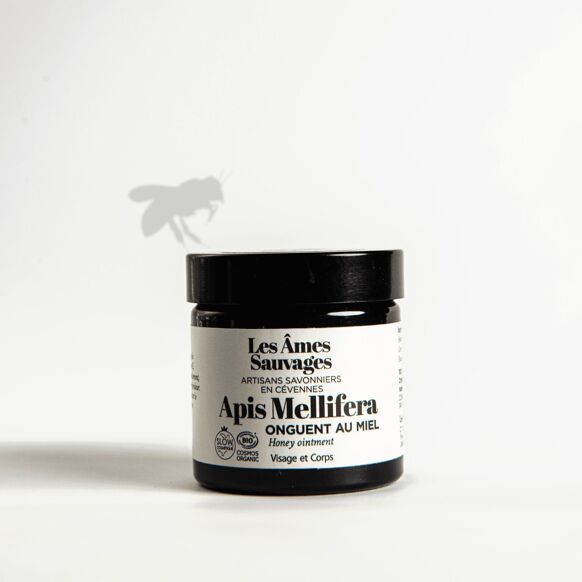 Du miel de châtaignier, de la cire brute, des huiles végétales (chanvre et tournesol oléique), un extrait de camomille; onguent simple, noble, originel. Comme l’Apis Mellifera.